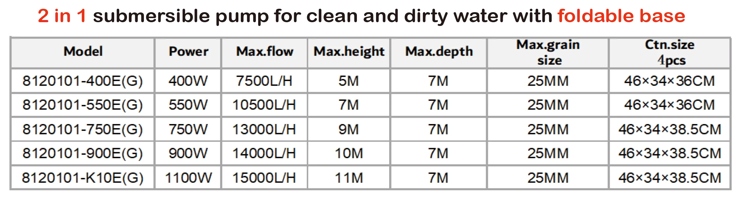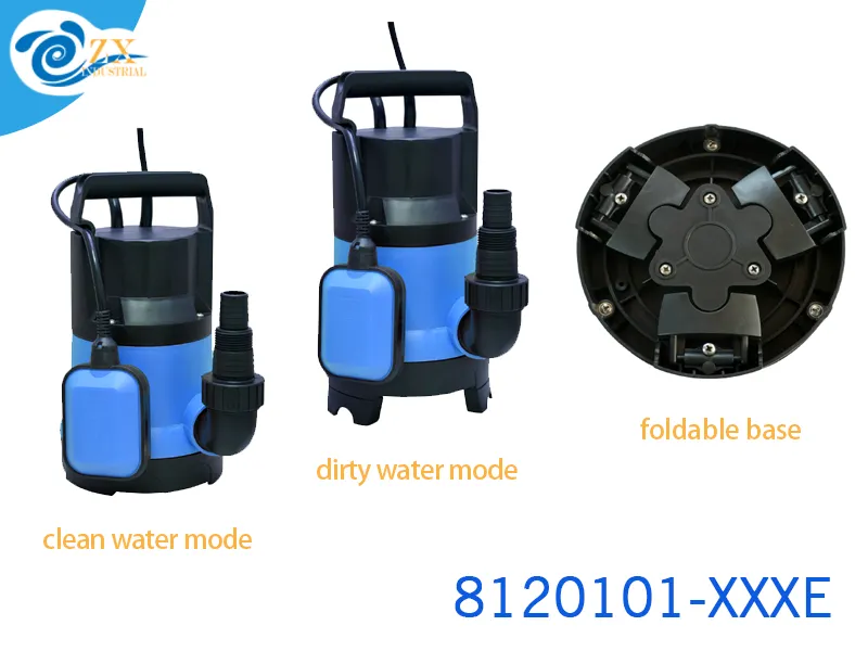 2 in 1 submersible pump with foldable base for clean and dirty water