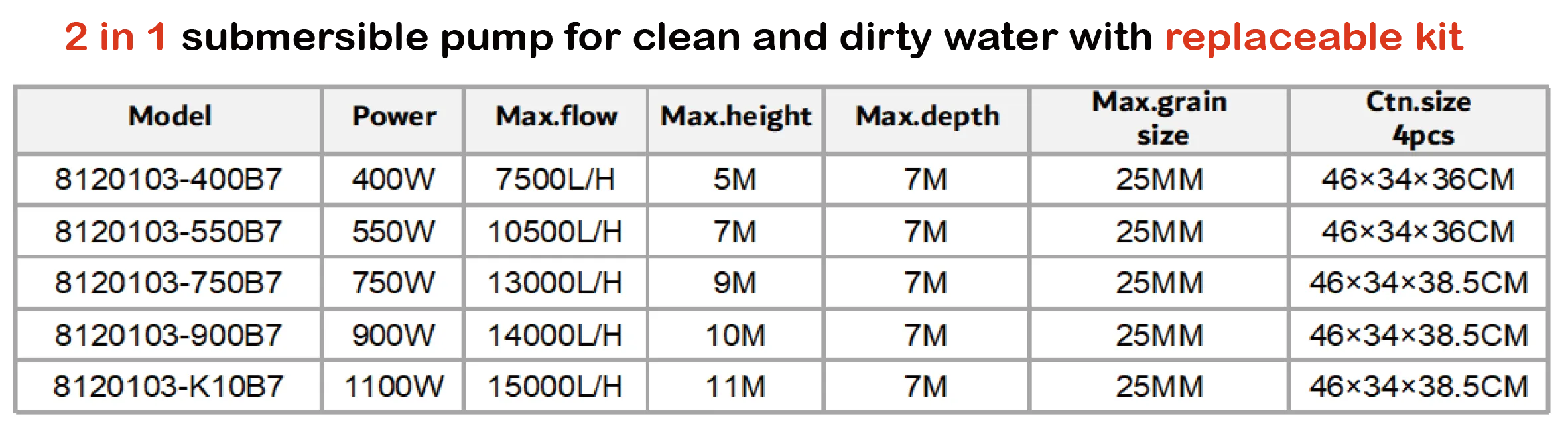 2 in1 submersible pump with replaceablekit for clean and dirty water